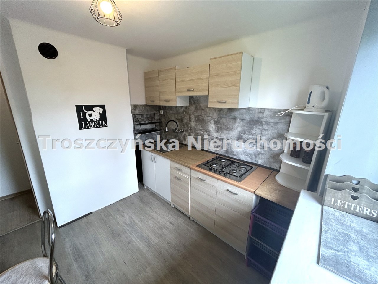 wiatrołap, kuchnia, 3 pokoje (jeden z garderobą), łazienka oraz toaleta,