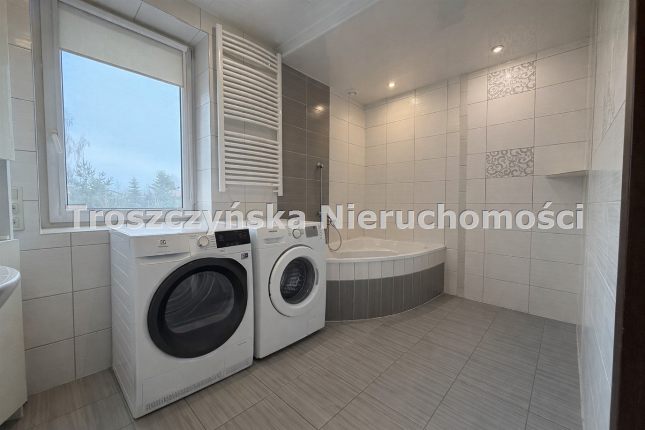 W domu znajdują się dwie niezależne kuchnie, 2 łazienki, 2 toalety oraz 5 pokoi.