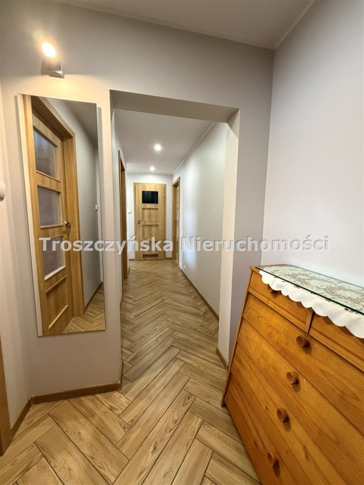 Mieszkanie jest jasne, zadbane i posiada bardzo wygodny układ pomieszczeń. W ostatnich latach wykonano remont przedpokoju, kuchni, łazienki oraz toalety. Zamontowano nowe drzwi, na podłogach znajdują się panele oraz płytki. Do mieszkania przynależy piwnica o powierzchni ok. 4,5 m² oraz duży balkon.